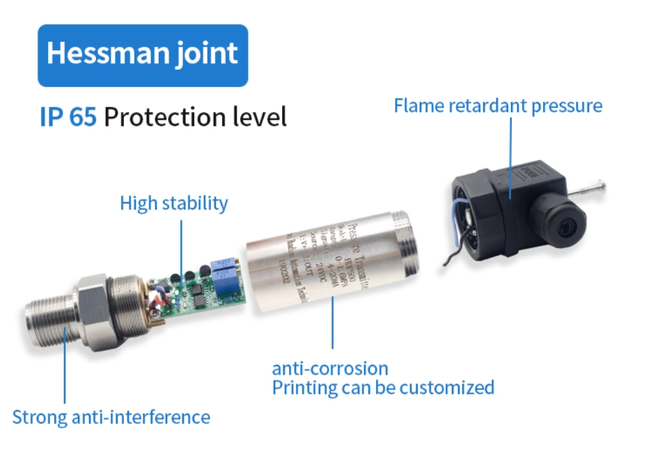 The pressure sensor adopts imported pressure sensitive components, digital compensation amplifier circuit with microprocessor, laser welding and packaging process of stainless steel housing, built-in anti-radio frequency and anti-electromagnetic interference circuit, with high precision, high reliability, small size, vibration resistance, anti-interference, strong ability feature and so on. This series of products offers a variety of mounting thread and electrical connection for customers to choose.